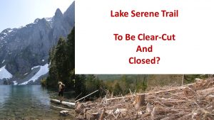 Help spread the word, lest the trail to Lake Serene will soon be buzzing with the whine of chain saws.