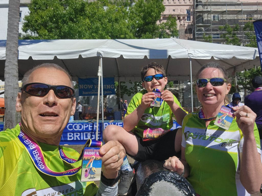 I had long been familiar with the Cooper River Bridge Run and always wanted to run it. It’s one of the country’s classic 10K runs. Started back in 1978 during the original Running Boom, this race has become the country’s 3rd largest 10K, just behind Atlanta’s Peachtree 10K, and Boulder’s BOLDERBoulder 10K. It would be the biggest race that I’ve ever run—and I’ve been running races since the 80s. For my 9 year old son, it would not only be his biggest race too, but also his first 10K. My wife was excited to run this race too and we would all be participating as proud members of Team Potato. Potato to Palmetto!