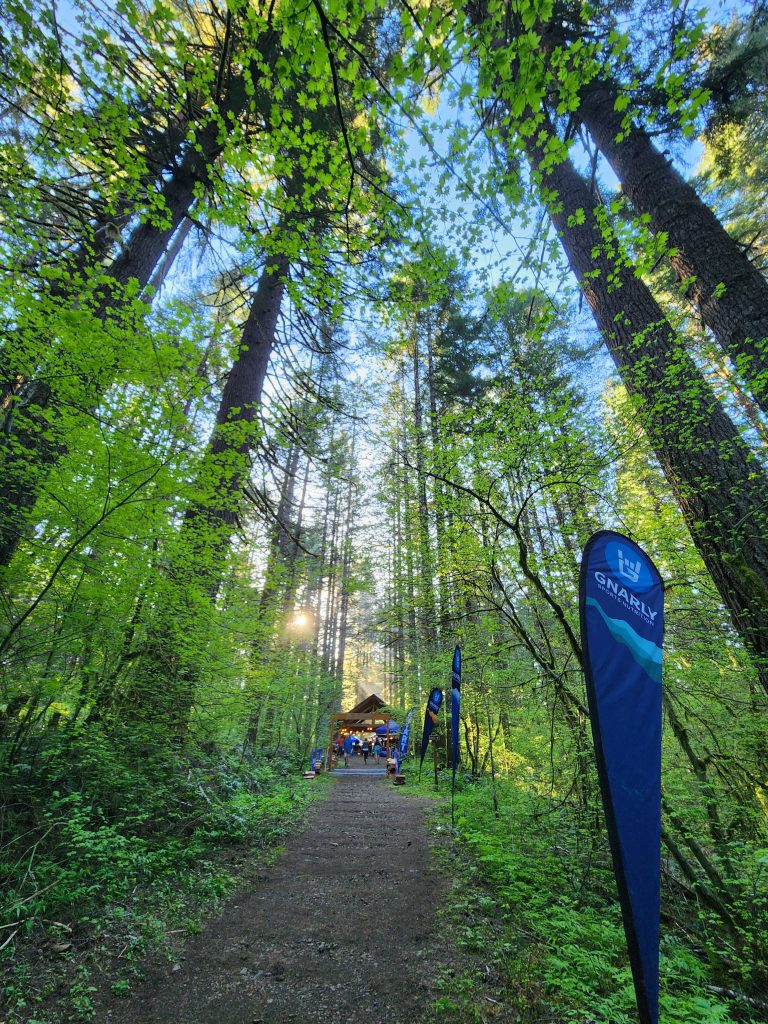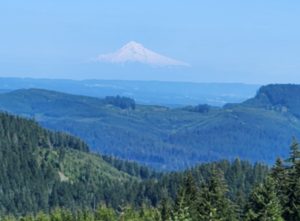 While race day was warmer than I’d prefer—with temps pushing 80, the course except for one brief section across a recent clear-cut was all forested—with much of the way along tumbling creeks in cool ravines. The clear-cut section was tough being on the biggest climb on the course (and a steep descent on the return) but the views! They were sweeping taking in four volcanoes, Mounts Rainier, St Helens, Adams and Hood.