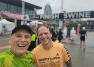 “Good job piggies!”and “Go pigs!” exclaimed a myriad of folks lining the streets as I along with more than 4,000 other determined runners plodded down the streets of Cincinnati. Anywhere else but in this city in southern Ohio on this day would those cheers be considered rude and offensive. But not here on this day. They were cheers of endearment and encouragement. We were all here for “the Pig!” Runners of all ages and abilities from every state and legions of locals turned out once again for Cincinnati’s Flying Pig Marathon.