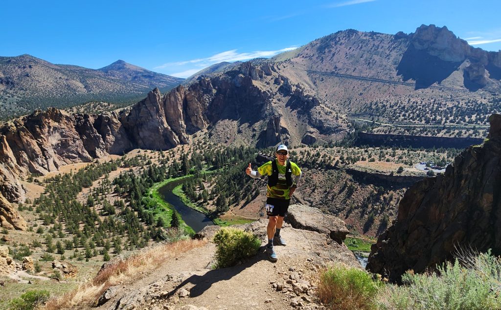 Be careful what you wish for! After running Eastern Washington’s Badger Mountain 50 mile in pouring rain with 30 mph winds, Cincinnati’s Flying Pig Marathon in 50 degrees and rain, and then a marathon training run on Northwestern Washington’s Whitehorse Trail in monsoonal downpours—I turned to my running partner with exasperation and exclaimed, “I’d rather run in hot and sunny any day over these conditions!” And that’s exactly what I got at Central Oregon’s Smith Rock Classic 50K! And with no shade on the course I got a whole lot of sun—and having not run in 80 degree weather since last September—the 80-plus degrees on race day along with the 4,400 feet of elevation gain made Smith Rock especially challenging.