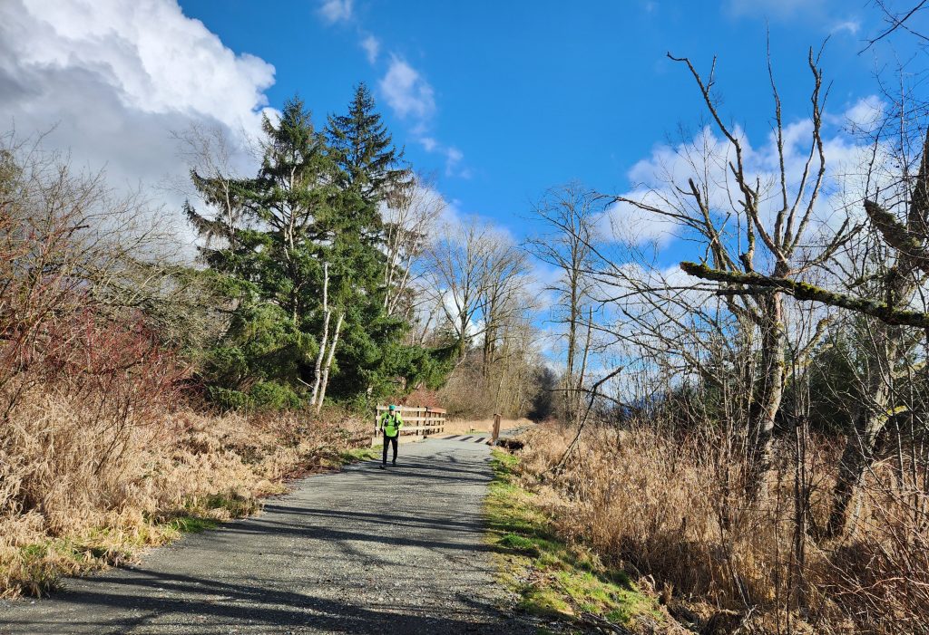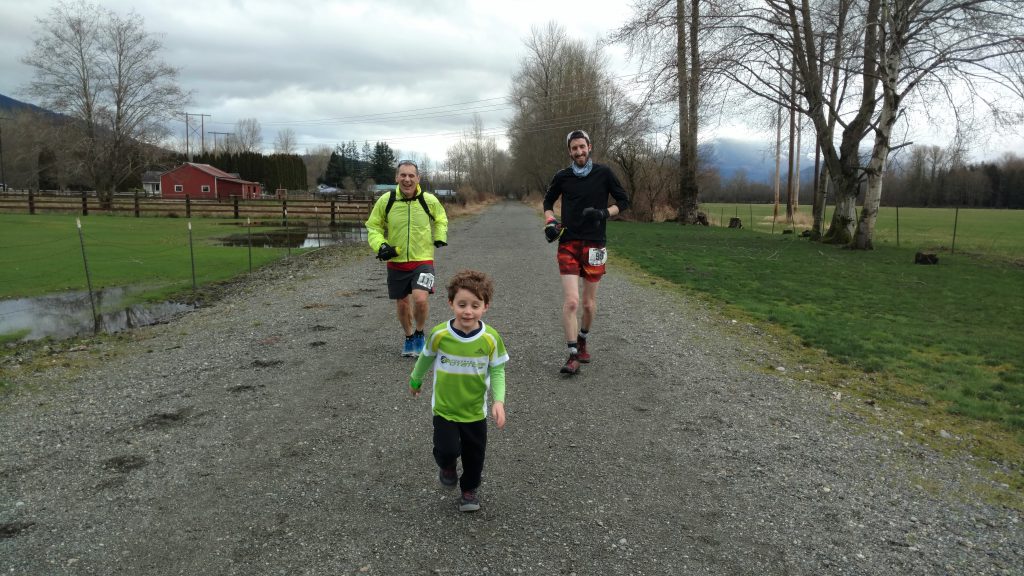 On a cool and overcast Valentine’s Day I joined 22 other intrepid 50K runners on Skagit County’s Cascade Trail. I knew this 23 mile trail well having trained on it many times. In 1999 this trail was established on a former trunk line of the Great Northern (later Burlington Northern) Railroad. Beginning in Sedro-Woolley it travels up the Skagit Valley to Concrete traversing farmlands and forest. It also travels along beautiful stretches of the Skagit River and through protected ecologically significant wetlands. And it’s flat, guaranteeing a fast (well as fast as you can run 31 miles) race. The race went out and back for 15.7 miles giving you a chance to high-five runners ahead and behind you. I ran the whole way with my friend Grady and we came in at just under 6 hours at 5.56.55. I was happy. Back in 2014 when I first ran this race (and my last ultra until this one) I clocked in at 5.42.10.